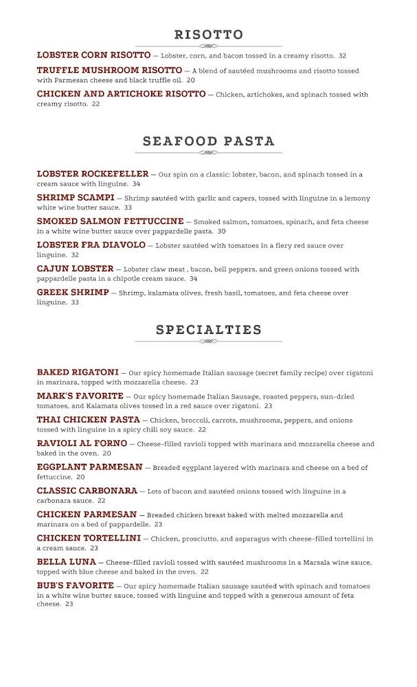Our spin on a classic: lobster, bacon, and spinach tossed in a cream sauce with linguine.